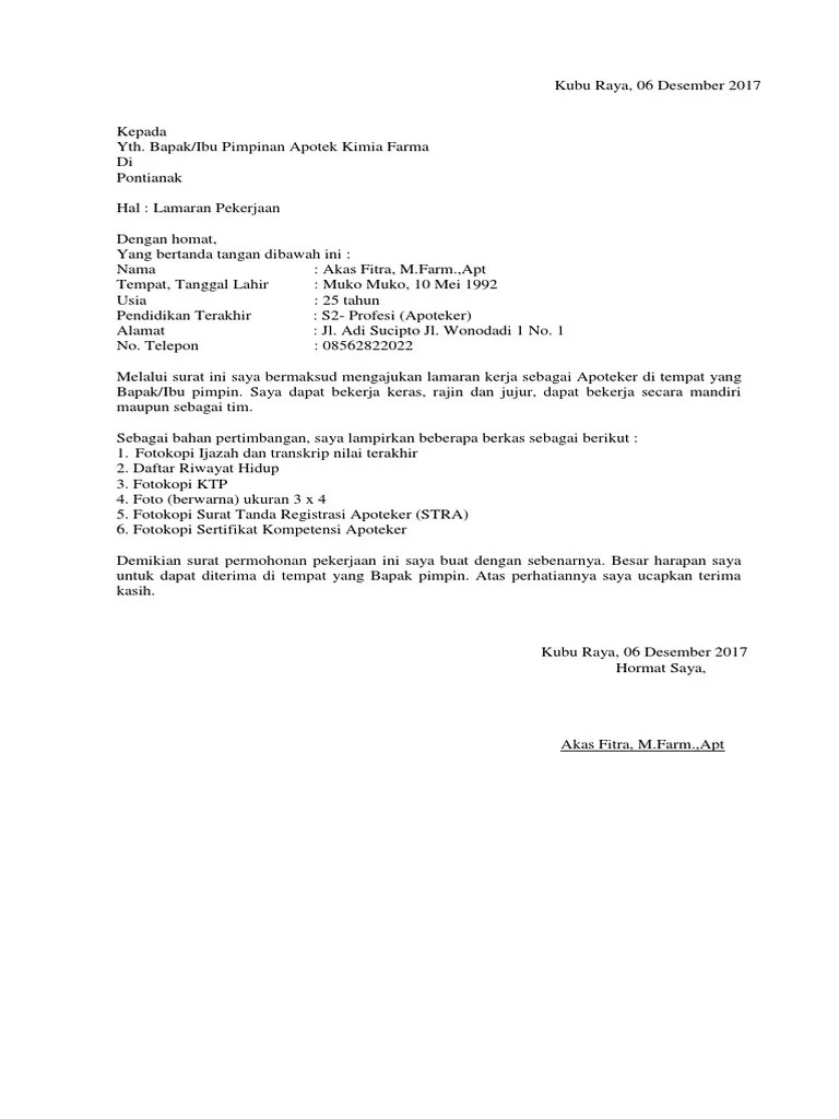 14+ Cara Membuat Surat Lamaran Kerja Farmasi Pics